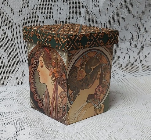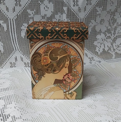 Used materials: MDF box, recycled paper, acrylic paint, paste.
