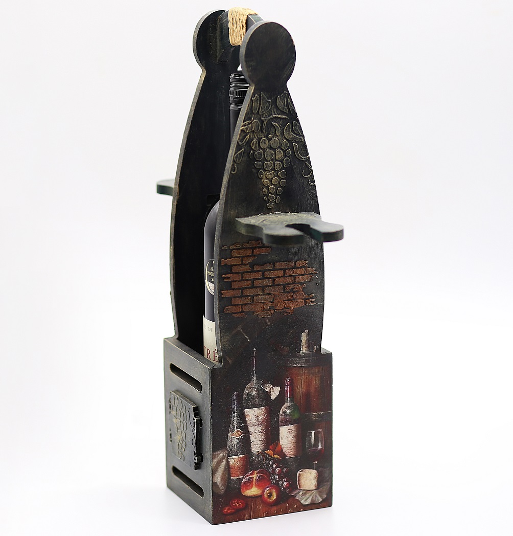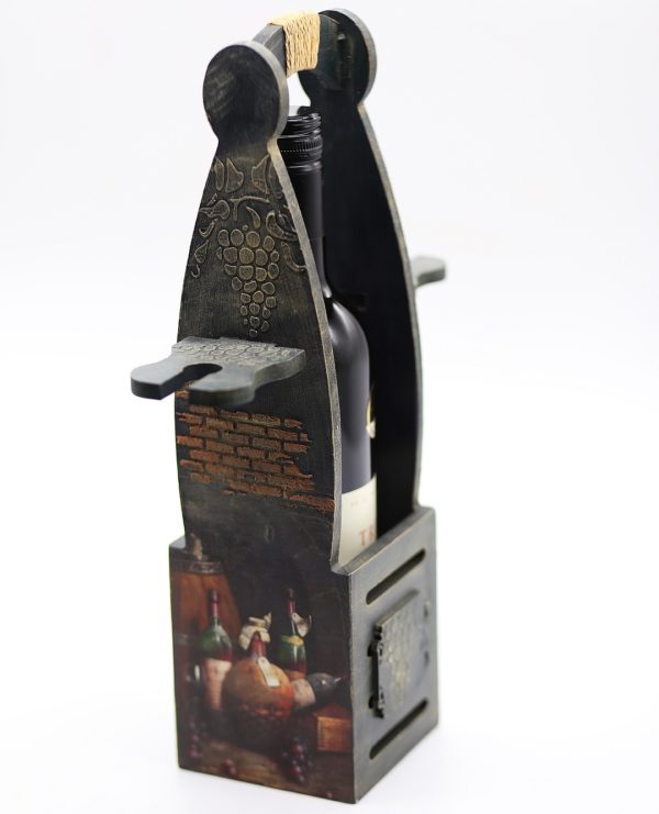 Decorated with decoupage techniques and made by strong base materials, with two wine glass holders.