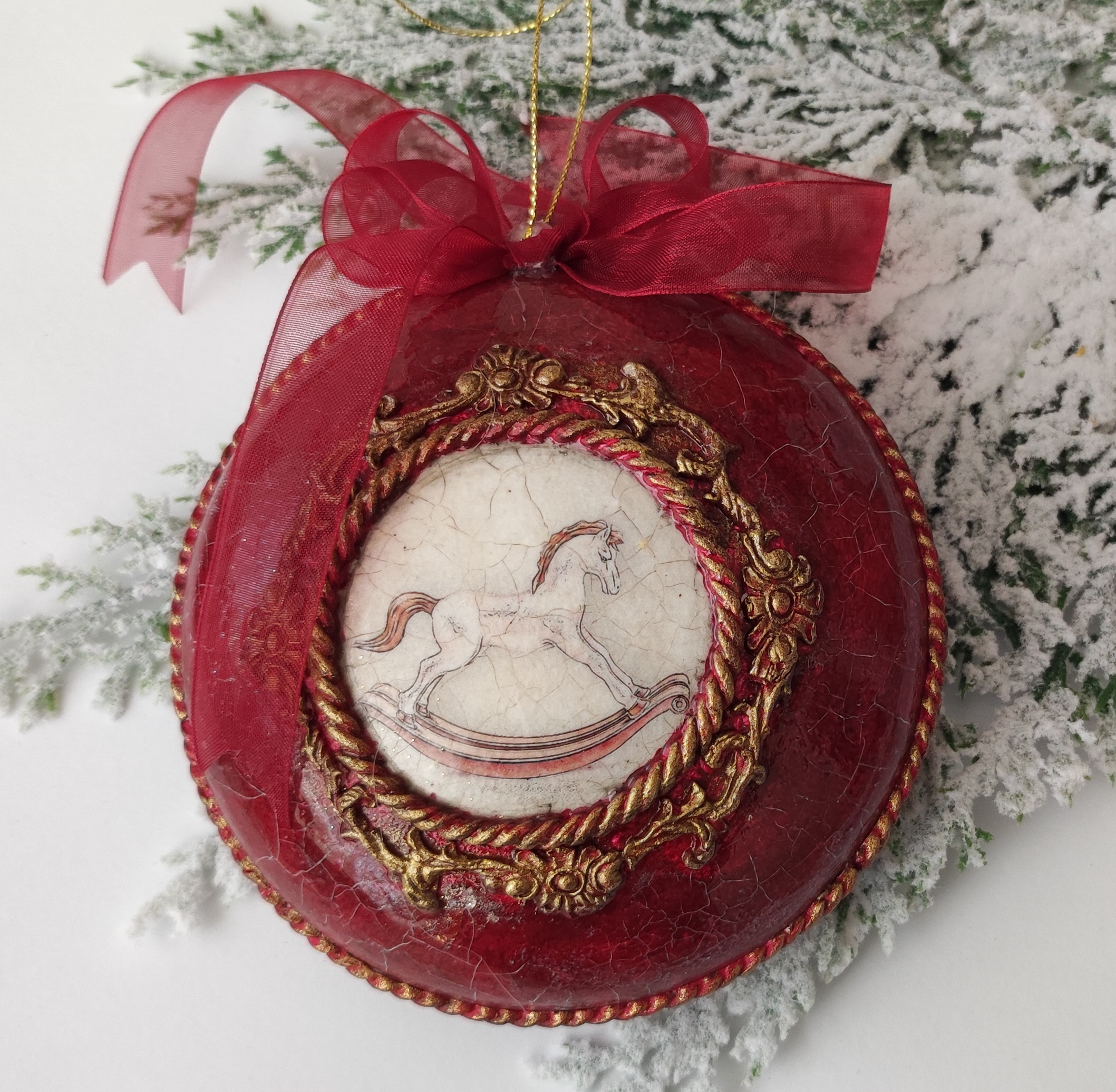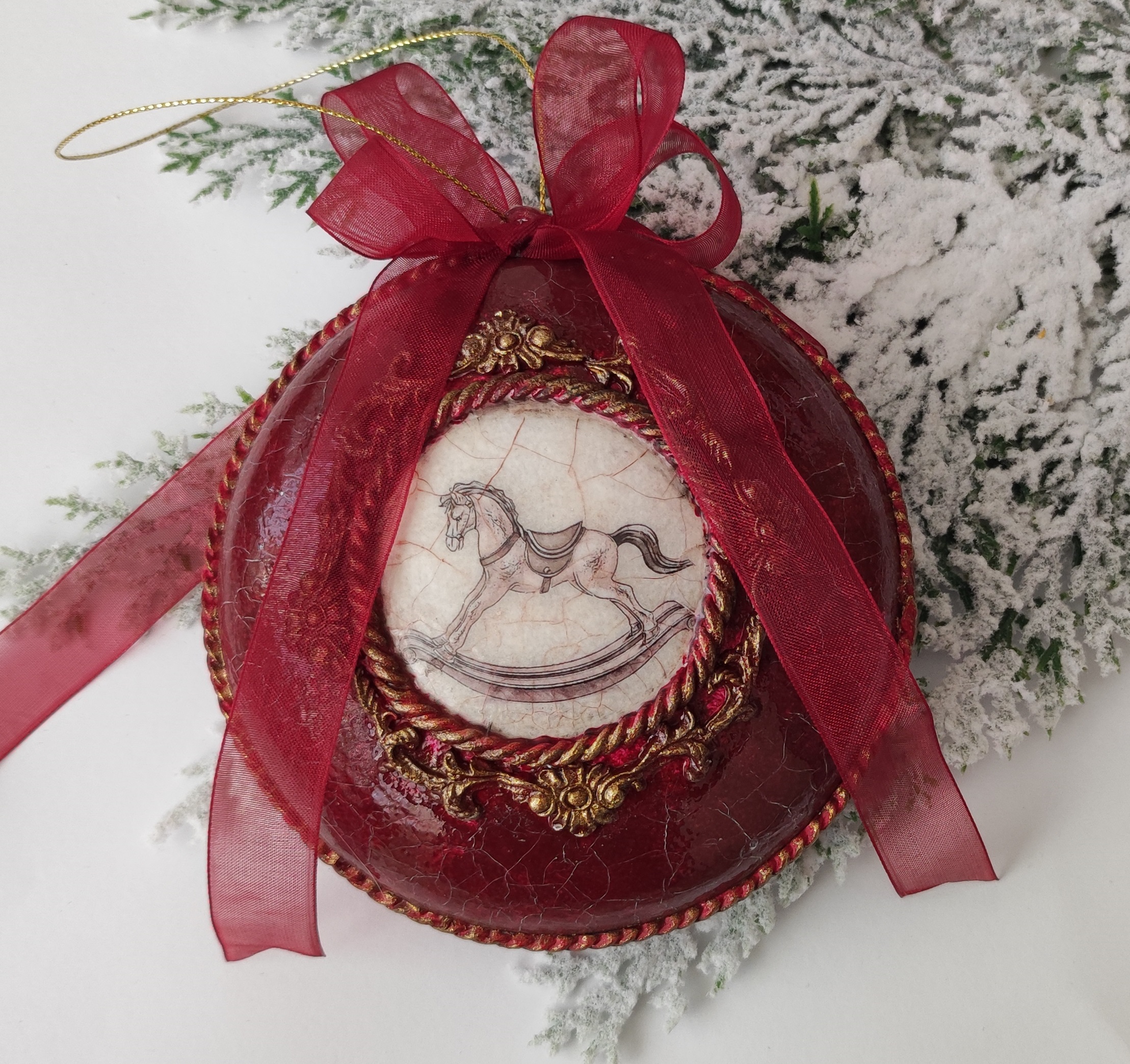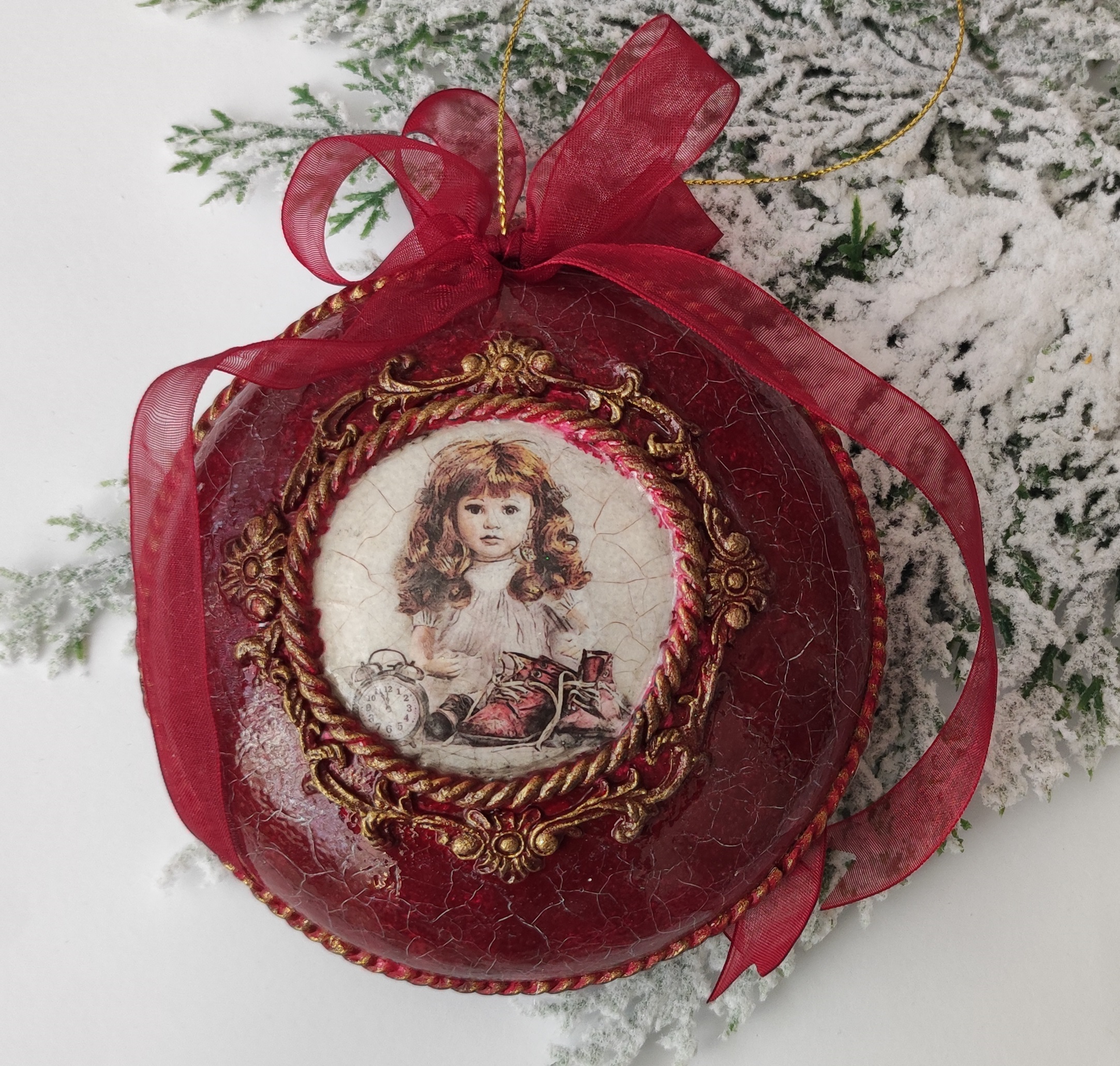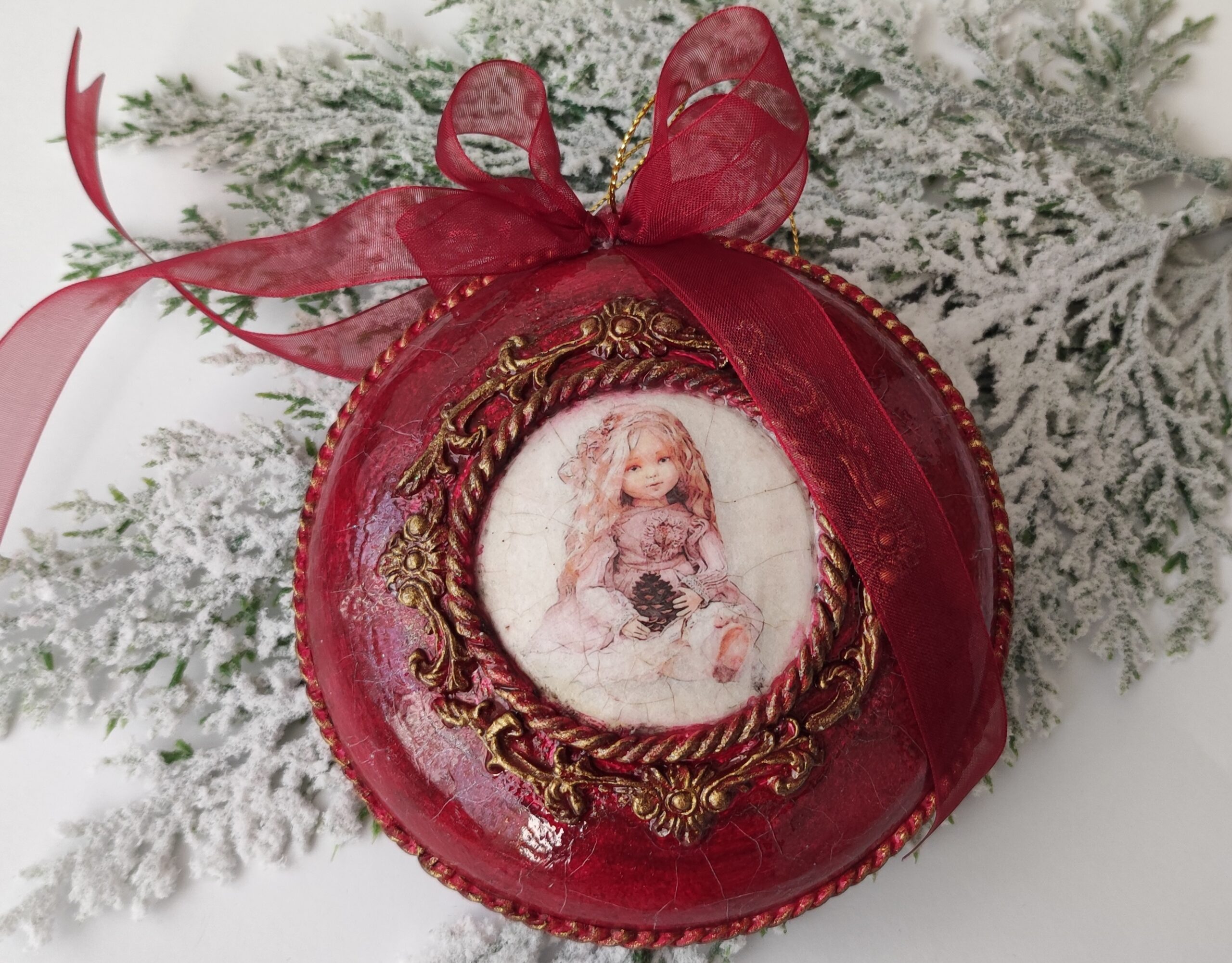 A christmas decoration piece made with decoupage techniques.