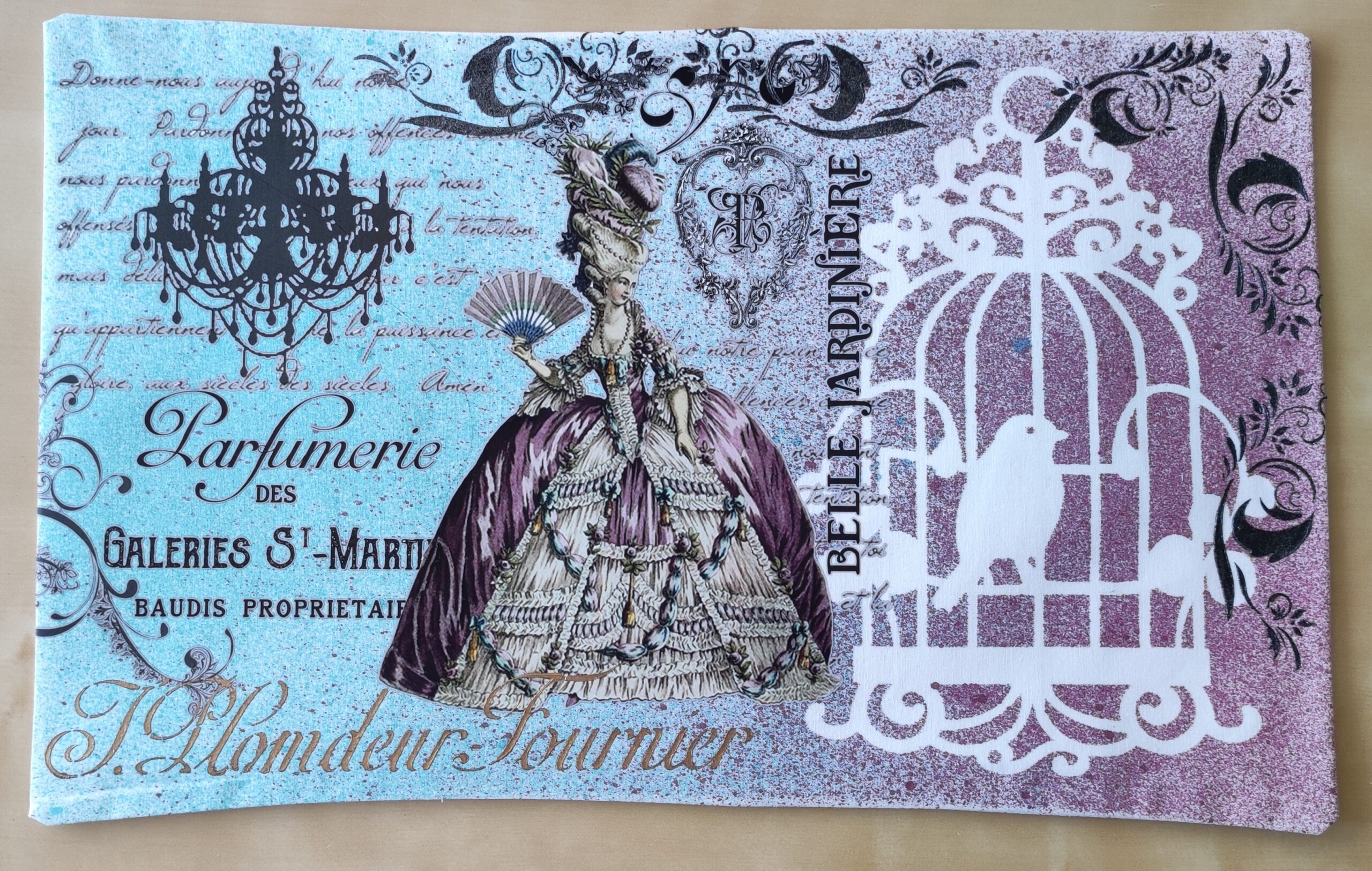 Decoupage technikával díszített párnahuzat, kézzel mosható.